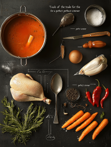 - The soup is dull in appearance.? Simplify, focus on balance of salt, acid, and herbs.