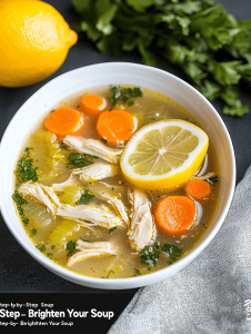 - Remove the chicken from the broth and shred it into bite-sized pieces, then return it to the soup. Squeeze fresh lemon juice into the broth for brightness and stir to combine.