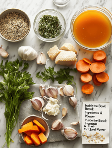 • Carrots and celery: Add sweetness and crunch, balancing the savory broth—use what you have.