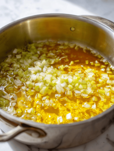 1. Heat olive oil or butter in a large stockpot over medium heat until shimmering and fragrant.