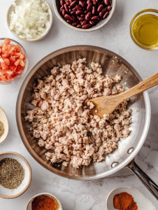 • 1 lb ground beef or sausage or lentils for a vegetarian version