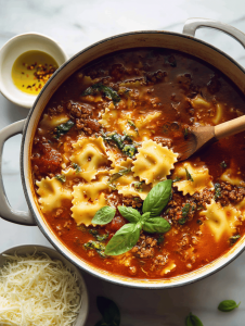 10. Serve the lasagna soup hot, with extra herbs or cheese if desired, and enjoy its comforting, cheesy goodness.
