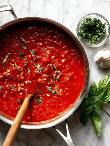 • Marinara sauce: Rich, tangy, with a hint of garlic—bright and flavorful.