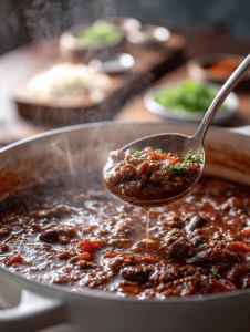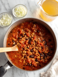 - Large heavy-bottomed pot: To evenly cook the chili without burning.